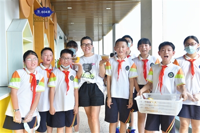 一份份承载着满满爱意的甜点,让老师们吃在嘴里,甜在心上。“何其有幸能遇见这么一群可爱的孩子,他们总是通过自己的巧手为我们老师送上许多感动,今天收到孩子们亲手制作的小甜点,特别开心,让我们在这充满温馨的日子里感受到浓浓的暖意。”莫佳菲老师接过甜点时,非常惊喜,笑得跟花儿一样灿烂。