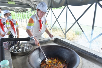 “我这个料好多,五颜六色,太好看了”“闻起来好香呀”“快点,多加点柴火,马上要出锅了”……9月7日,新街小学的孩子们当起“小厨师”,上了一堂特别的“劳动课”。他们戴上厨师帽,烧火开灶,亲手制作了黄桃银耳羹、五谷丰登两道甜点,并作为教师节礼物送给了老师们,让老师们度过一个最“甜”的教师节。