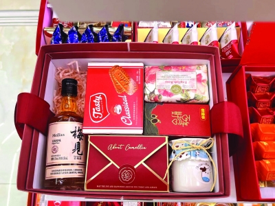 一般的喜铺,备好各类糖果已经是“基本功”,还要花心思琢磨年轻人爱什么口味、钟情什么品牌。最近,瑞幸“酱香拿铁”走红网络,施女士就紧跟潮流,将“酱香拿铁”酒心巧克力上架了。“每个月我基本都会更新一次店铺糖果。这次这个新品我尝了,确实味道浓郁,怪不得年轻人喜欢。”