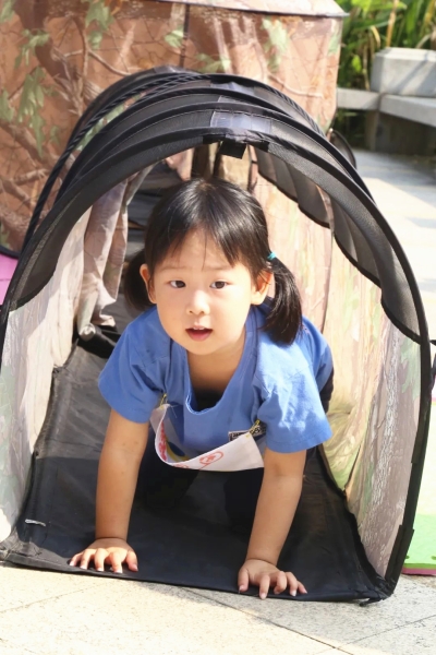 当天,参加毅行的家长和孩子们在吕才庄河道公园准时集合,老师们活力四射的啦啦操,带动大朋友小朋友们一起舞动起来。赛前热身过后,孩子们和爸爸妈妈一起,沐浴着阳光,感受着美景,呼吸着新鲜空气,踏上毅行之路。动感小跳环、飞索竹木桥、障碍挑战赛、跨越小能手、西瓜大运送、接二连三赛、我是神投手、隧道大探险……全长2公里的毅行路程中,孩子们在奔跑、跳跃、游戏、闯关中,挑战自我,完成打卡,奔向胜利的终点。