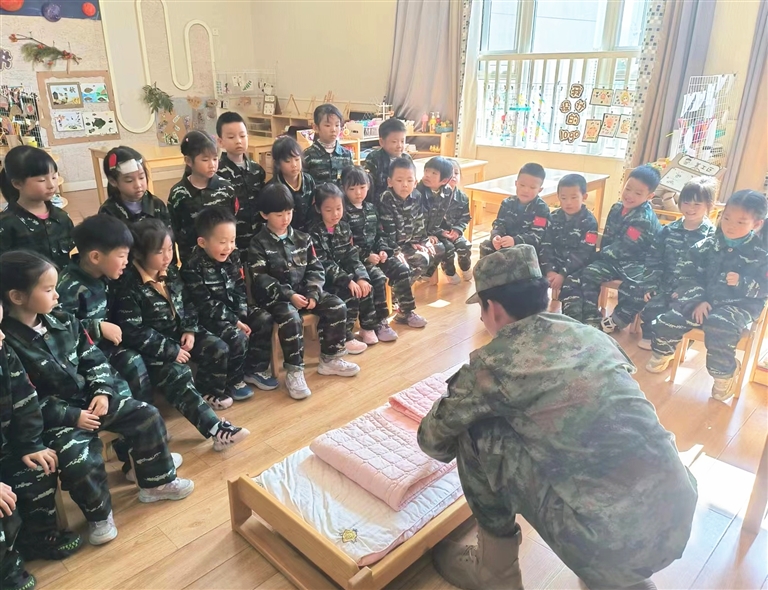 喊着响亮的口号、站着整齐的队伍、带着昂扬的精神,孩子、老师、家长齐心协力,共同前进,时时刻刻用行动诠释着对解放军的敬佩之情、对祖国的热爱之情,爱国的种子已悄然播撒在孩子们心中。