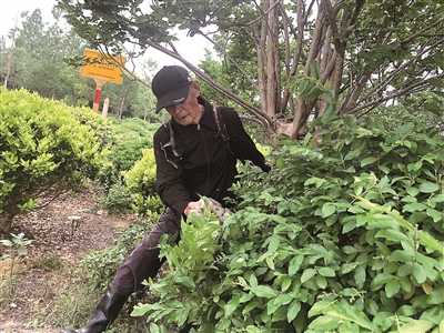 若以前是种地讨生活,现在完全不必了。殷大伯和老伴每个月有近3000元的养老金,靠以前辛苦劳作,手里还有一定的积蓄。加上儿子女儿孝顺,完全不需要为生活发愁。在殷大伯的观念里,自己还干得动,就不能闲着。于是他承租了2亩地,每天上午去地里劳作2个小时,给苗木拔草、喷药水、修剪造型。在日复一日的劳作中,他背不驼,眼不花,耳不聋,心胸豁达。