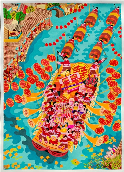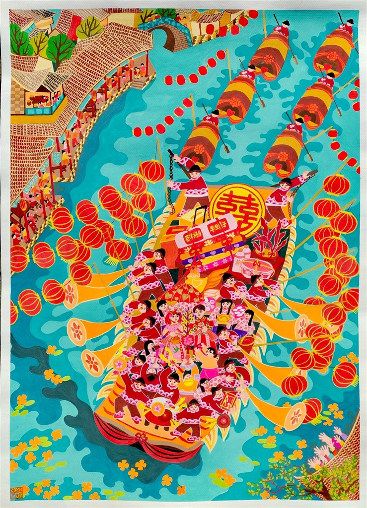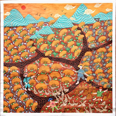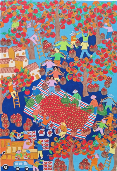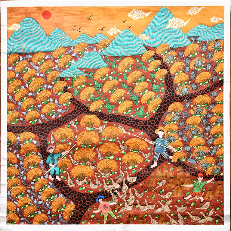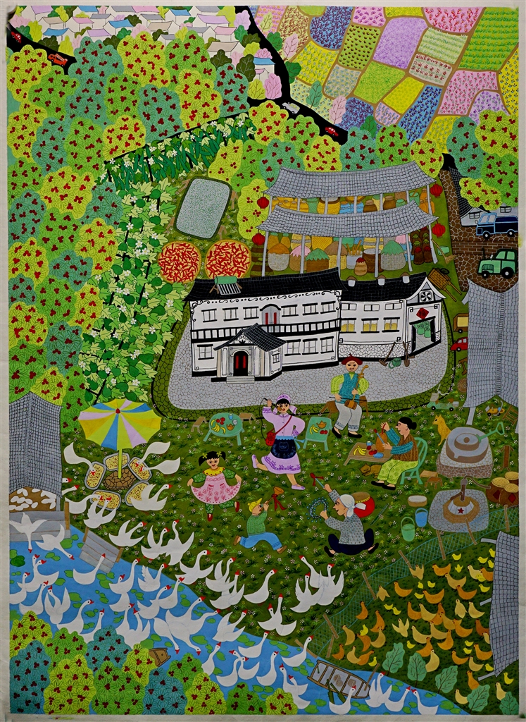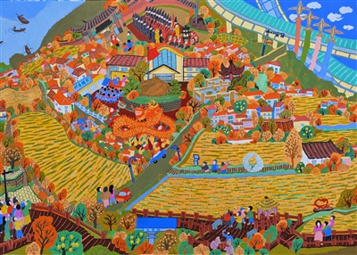 农民画是中国最普及、最具群众基础的民间艺术之一,它以其明快的色彩、饱满的画面、真挚的情感、夸张的造型等特色,展现出丰富多彩的农村生活和乡土记忆。农民画来源于农村,取材于农村,寄寓着老百姓对美好生活、美丽乡村的理想。