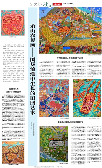 从田间地头到艺术殿堂,从自娱自乐到产业破局,萧山农民画走出了一条“以文培元、以艺铸魂、以创兴业”的乡村振兴特色之路。当农民放下锄头,拿起画笔时,他们绘制的不仅是艺术作品,更是在描绘新时代农民的文化自信与精神共富图景。这片曾被潮水浸润的土地,正以艺术的方式,涌动着新时代的文化春潮。