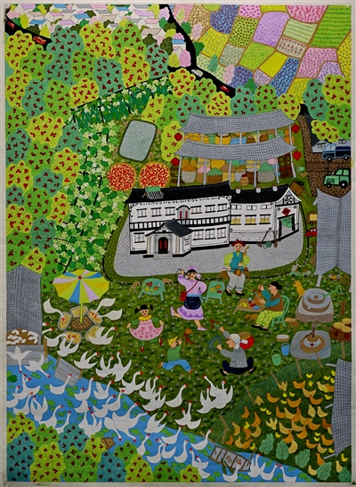 农民画创作手法独特,是一种依托于自身对所处环境事物的观察而作的画,具有一定的白描写实的特征。随着乡村振兴战略的全面实施,近年来,萧山一大批反映新农村题材的美术作品受到广泛关注。新时代的农民形象由传统的扛锄头、下泥地的刻板印象,转变为拿画笔、绘生活的“文艺范儿”。