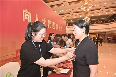 签到登记、领取材料、佩戴证件……人大代表们在会务工作人员指引下,有序办理着报到手续。随后,大家仔细查看会议指南,熟悉会议议程,并围绕自己关注的热点话题相互交流探讨。