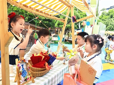 近日,在机关幼儿园的操场上,一群“小掌柜”正踮着脚尖,用稚嫩的声音热情吆喝:“快来看呀!绘本1元、玩具2元、绿植5元……”阳光下,孩子们认真推销的模样,让每个摊位都变成了传递温暖的“爱心驿站”。这是机关幼儿园第七届“绿市集·爱淘淘”义卖节的热闹场景,更是幼儿园“红苗慈善码”的启用现场。当义卖声此起彼伏地响起,这场持续了7年的爱心接力,正以数字化赋能的新方式,在孩子们心田播撒着向善的种子,让爱的教育焕发出时代的光彩。