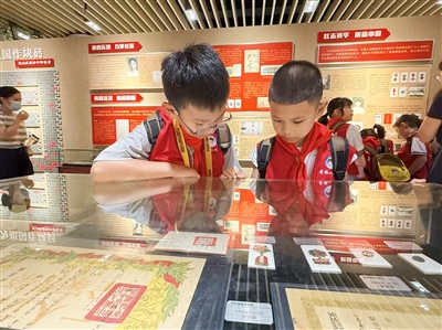 陈列馆内,泛黄的日记、锈迹斑斑却依旧耀眼的军功章、定格峥嵘岁月的老照片,串联起萧山的革命与建设历程。小记者们或俯身细看史料说明,或提笔记录英雄事迹。