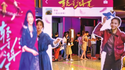 图为8月31日,观众在天津市滨海文化中心保利万和国际影城准备入场观影。