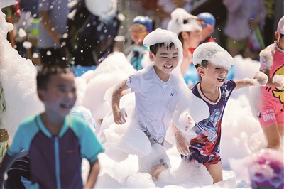 本报讯(通讯员 高颂赞 记者 王俞楠)新学期伊始,悦虹幼儿园为孩子们准备了一场充满创意与活力的泡沫泳池派对。蔚蓝充气泳池里,泡沫飞扬、水花四溅,孩子们分批玩转水枪大战、泡沫造型等游戏,享受亲水乐趣,释放天性。