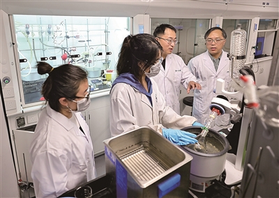 日前,浙大科创—杭州之江有机硅联合实验室在环氧树脂增韧领域取得了重大突破,通过新技术手段,可让胶黏剂粘性更好,未来将广泛应用于航空航天、电子封装、储能电池等领域。图为团队负责人带领成员进行相关实验。