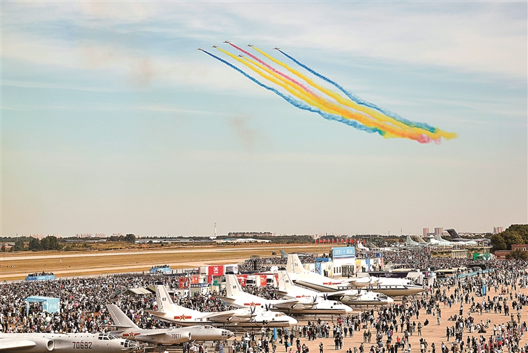 9月19日,2025年空军航空开放活动和长春航空展开幕。本次航空展集中展出百余型空军现役飞机、地面装备以及退役经典装备。图为当日,空军航空大学“红鹰”飞行表演队进行飞行表演。