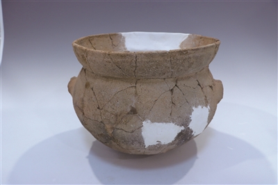 其中,灰坑中出土的一件陶釜具有代表性。这件陶釜口径25厘米、高20厘米,保存较为完整,双侧各有一只“耳朵”——鋬(指陶器的耳状把手),底部泛黑,可能是火烧的痕迹。“陶釜属于炊器,这是出土的遗物中比较完整的一件。至于底部的黑色痕迹,是使用过程中形成,还是烧制时留下,还不能完全确定。”工作人员介绍说。