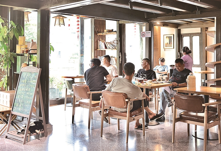 随着国庆、中秋假期临近,近日,我区不少民宿迎来预订热潮。图为在进化镇欢禧民宿,已有不少游客前来静享休闲时光。