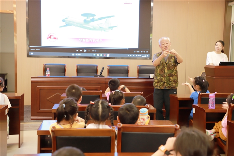 而在旁边的会议室,另一位老兵爷爷正配合视频讲解九三阅兵仪式上的装备奥秘。“这是坦克,这是无人机……”孩子们睁大眼睛,仿佛置身阅兵现场。到了提问环节,他们纷纷举起小手:“爷爷,飞机为什么能飞那么高?”“解放军叔叔怎么走得那么整齐?”面对这些充满好奇的问题,老兵爷爷笑着逐一解答。“咱当兵的人,有啥不一样……”随着嘹亮的军歌声响起,现场气氛愈加热烈。老兵爷爷鼓励孩子们:“你们要好好吃饭、锻炼身体,做和平的小使者!”话音刚落,孩子们纷纷回应:“长大后我要当解放军叔叔!”“我要保护国家!”稚嫩的童声里,满是对强国力量的向往。