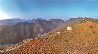 深秋时节,位于河北秦皇岛的董家口长城沿线层林尽染,呈现壮观景色。
