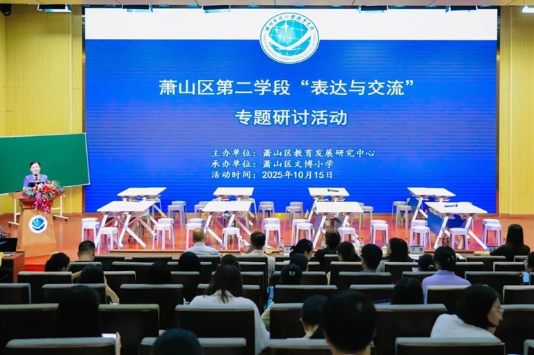 近日,萧山区第二学段“表达与交流”专题研讨在文博小学举行。活动由区教育发展研究中心主办,旨在深入贯彻新课程标准,助力小学语文教师精准把握新课标内涵,更新教育观念,优化教学方法,提升教学能力。